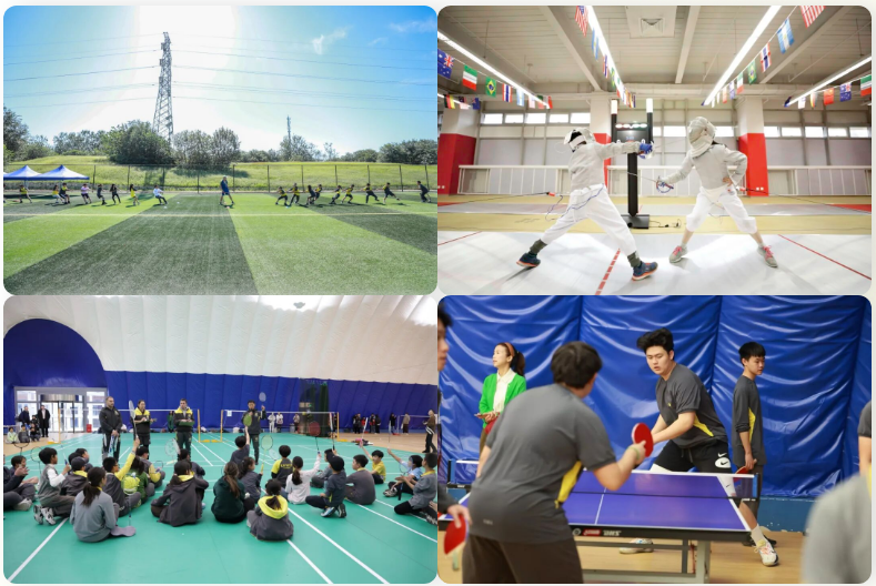 为了满足学生们的各类体育课程和活动需求,学校还配备了世界级赛事规格的运动比赛场地,如国际田联黄金联赛规格的蓝色跑道、按中网标准修建的网球场、高尔夫练习场、室内和室外棒(垒)球场、50米标准泳池游泳馆等。