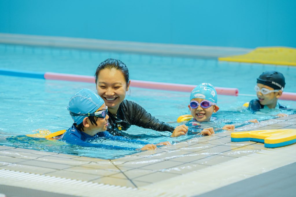 入门阶段的核心是“快乐入水”。教练通过水中游戏和趣味任务让孩子在玩耍中自然克服对水的畏惧,建立起最初的信心。进入技术精进的中级阶段,教学重点从“有趣”转向“有效”。教练在打磨动作细节的同时,尤为注重长期目标的确立。