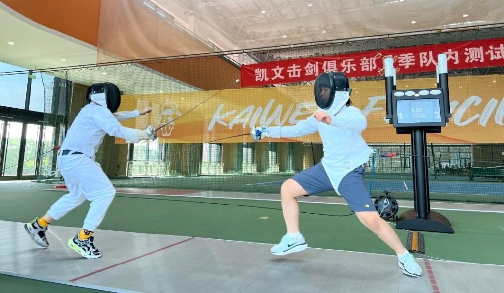 在击剑项目中,设备的专业性决定了训练反馈的真实性。凯文所使用的裁判器能实现交锋瞬间的精准判定。“全国顶尖的裁判器仅5台,凯文就拥有2台,1台在海淀凯文,1台在朝阳凯文。”白竟谊教练自豪的表示。