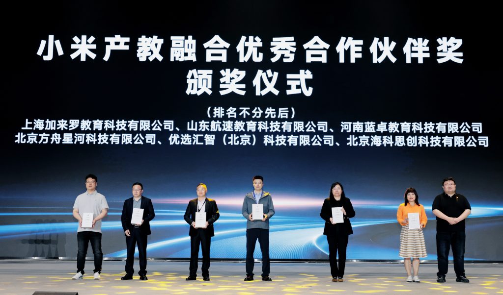 在活动中,凯文教育旗下北京海科思创科技有限公司凭借卓越的共建成果以及在教育领域的专业服务能力,获授小米产教融合「优秀合作伙伴奖」。