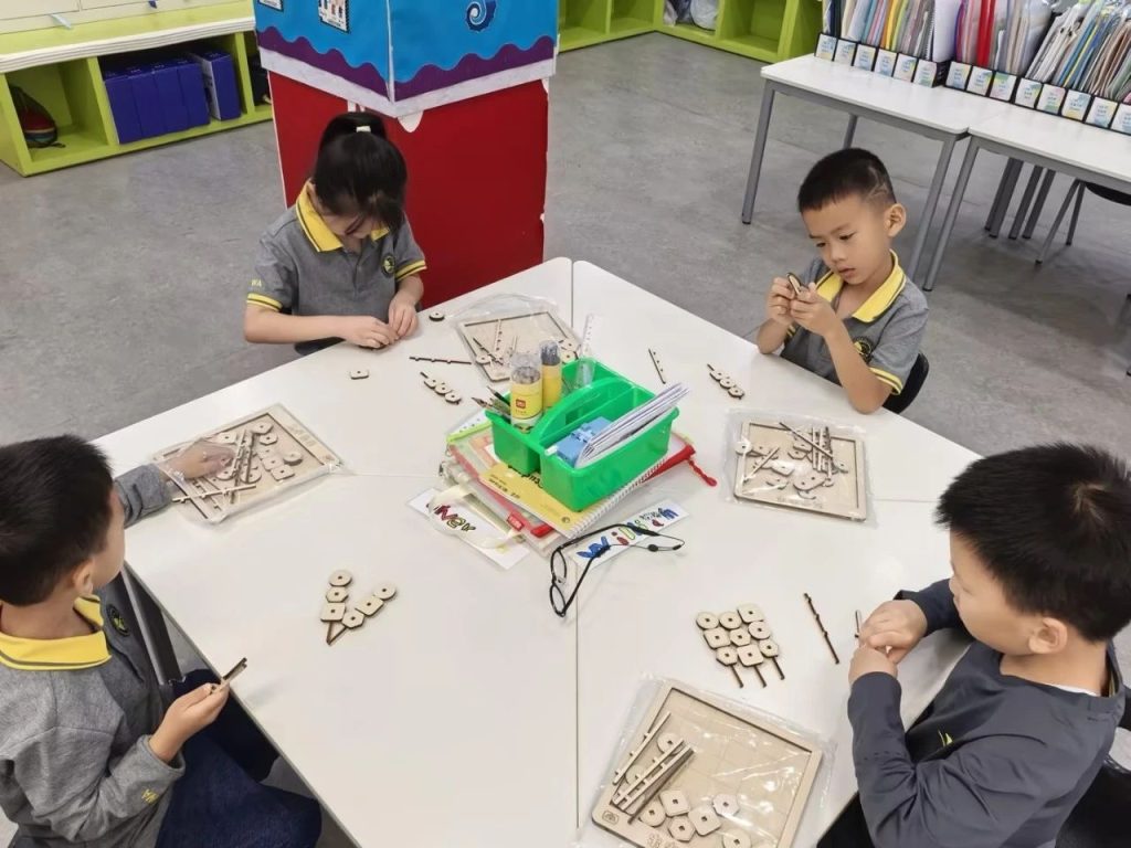 上面这张看似平常的照片,是海淀凯文的一年级小朋友在上数学思维活动课。这样的“特别之处”在今年新开的“景润数学特色班”还有很多。