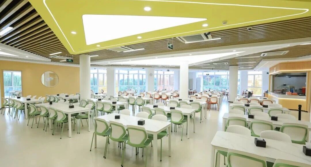 两所学校在暑假期间均扩大了学生用餐区域,优化了空间动线与餐位布局,餐厅不再只是一处“快速就餐”的功能区,而是逐渐转变为一片承载交往、放松与习惯养成的社区场景。我们希望以舒适的用餐体验,确保学生在繁忙的学业中,也能兼顾饮食健康,以充沛的精力迎接挑战。