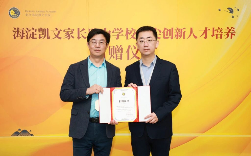 海淀凯文李永远校长与熊友军博士共同出席了捐赠仪式,李校长代表学校向家长表示诚挚感谢。此次捐赠不仅体现了家长对学校教育工作的认可,更为学校全新开设的 “未来智能中心”(Future Intelligence Lab),以及学校在创新人才培养与未来科技教育领域的探索注入了强劲动力。