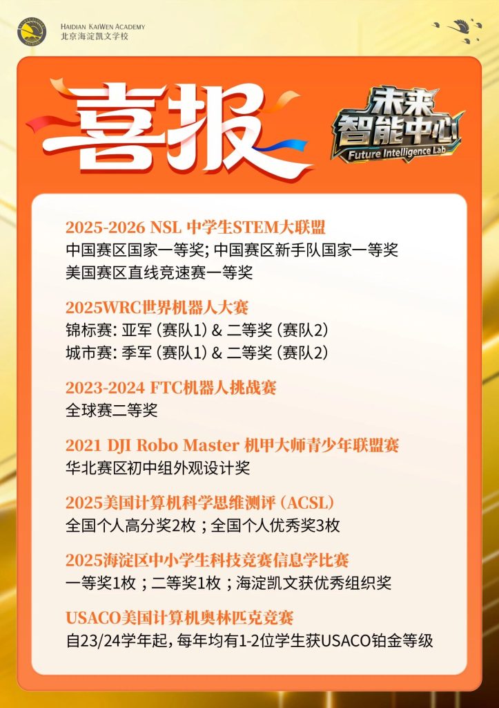 海淀凯文学生在计算机、信息学和机器人工程相关学科领域竞赛中所获奖项