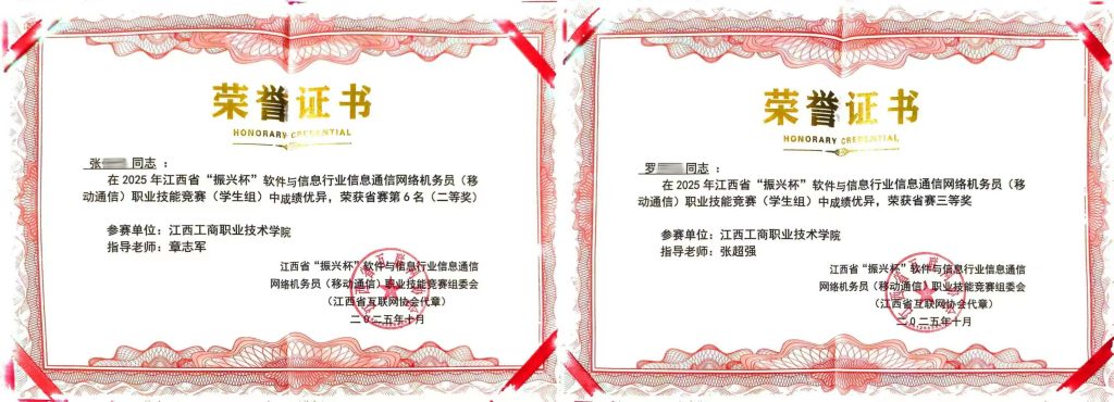 在江西省“振兴杯”信息与软件行业信息通信网络机务员(移动通信)职业技能竞赛中,信息工程学院的学生斩获1项二等奖、1项三等奖。