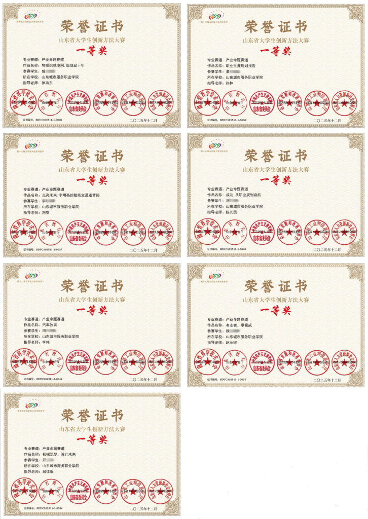 2025年12月,在第十七届山东省大学生科技节——职业生涯规划竞赛中,海科人工智能制造学院人工智能技术应用、物联网应用技术专业的学生共斩获64项荣誉。7名同学斩获一等奖;19名同学荣获二等奖;38名同学荣获三等奖。