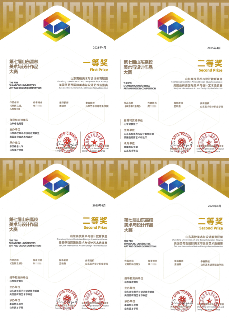 大赛由山东省教育厅、山东高校美术与设计教育联盟、美国圣荷西艺术市政厅联合主办,吸引山东、北京、上海、广东、福建、江苏、江西、澳门等来自国内外近40余所院校参加。