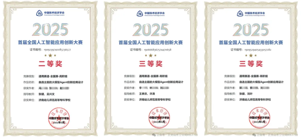 在2025年7月举办的首届全国人工智能应用创新大赛中,海科信创产业学院人工智能、电子商务、大数据专业的学生团队,斩获1项国家级赛事二等奖、2项国家级赛事三等奖,并在省级赛事中取得3项一等奖、5项二等奖、4项三等奖。
