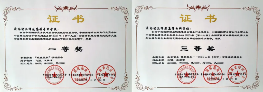 过去一年,各产业学院在多项高水平赛事中实现突破:济南幼儿师范高等专科学校学生斩获1项国家级二等奖、2项三等奖;江西工商职业技术学院学生荣获全国特等奖;湖南幼儿师范高等专科学校学生夺得Python程序开发赛项一等奖……这些成绩充分体现了产业学院在专业建设与人才培养方面的过硬质量。