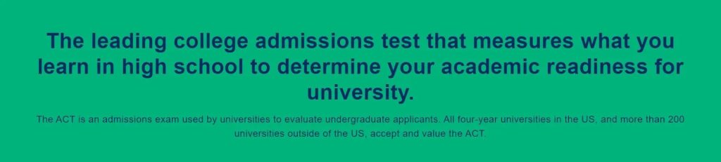 “ ACT考试在学生申请大学时扮演着重要的角色,可以为大学提供一个客观的评估标准,同时也为学生提供了展示自己学术水平的机会。高分可以提高学生进入理想大学的机会,因为大学招生委员会通常将ACT分数作为评估学生学术能力的一个标准。
