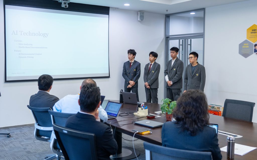 朝阳凯文学生就“AI商店”项目向校领导进行路演答辩